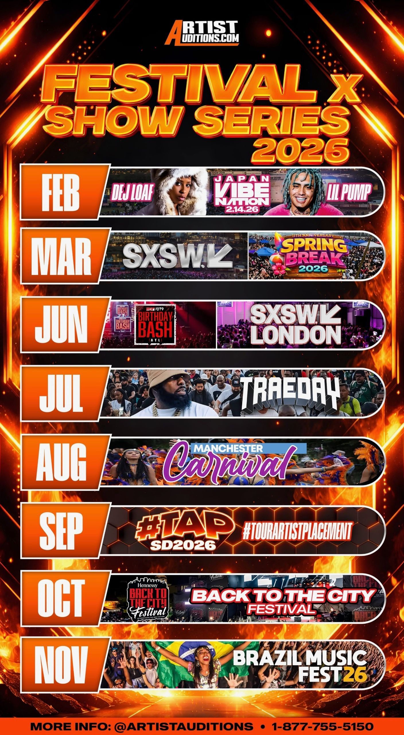 Since 2010 ArtistAuditions.com has booked over 1000 independent artists on some of the largest stages around the globe. But what’s next? We have been approached by many of these same artists who have outgrown single show placements and are looking for the next big challenge! Artist Auditions is proud to meet that challenge to offer bookings for nat'l & intl.show & tours.